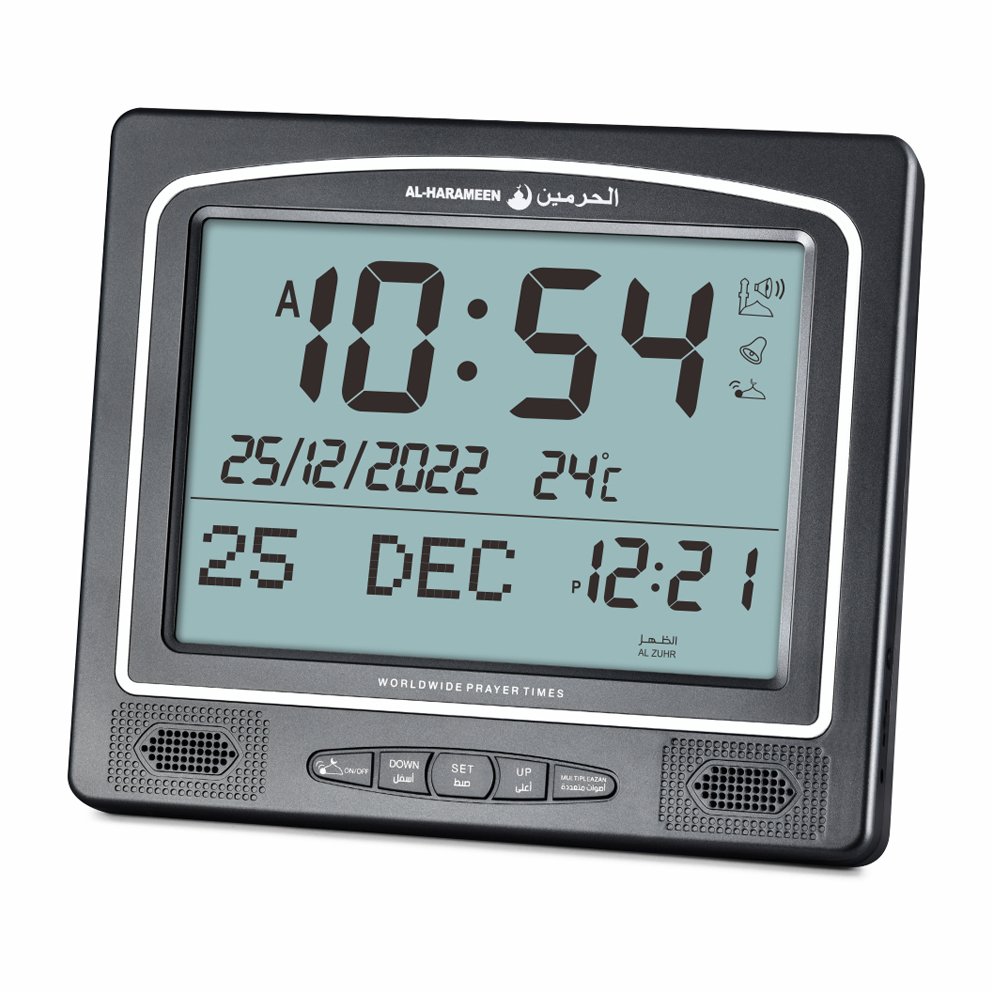 ساعة الحرمين الرقمية – ثنائية اللغة للمنزل والمكتب والقاعات والمساجد