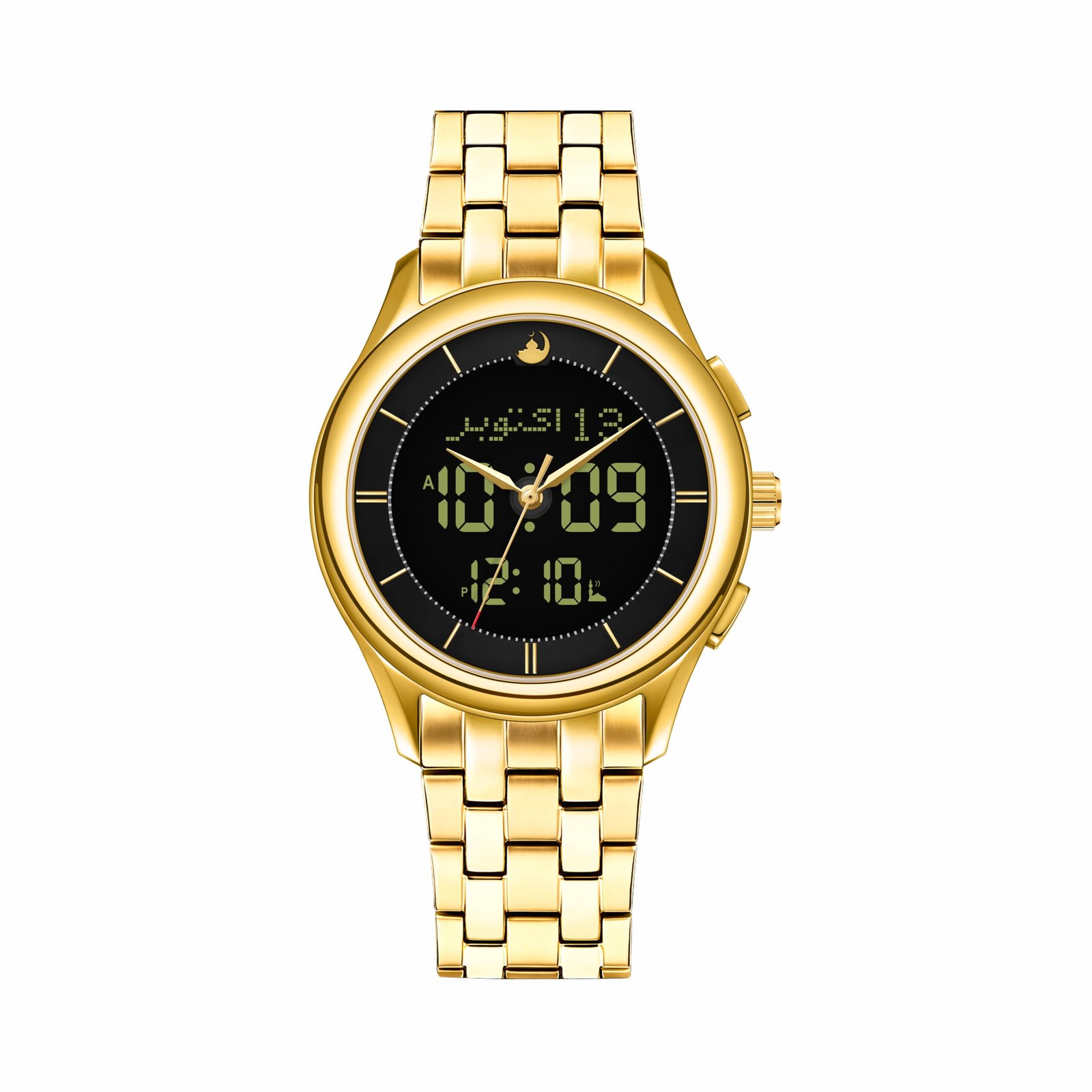 - ساعة فاخرة تجمع بين الأناقة الكلاسيكية والتقنيات الإسلامية الذكية… لتصلك الصلاة في وقتها وأنت مطمئن وأنيق.